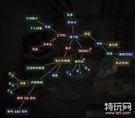 5、把电源线拖到桌子里的笔记本电脑就有电了,需要输入开机密码,然后把工作台里的药品拖到键盘发现上面的提示0、2、7、再根据开机密码是不被5整除的三位偶数所以密码是702。