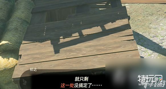 2、接着就是找到桂达后是可以跟他进行对话,了解到这个位置是还有一块板子还没有搞定,所以这里就是需要玩家来将它修补好。