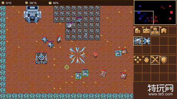 在实时战略模式下,你必须管理你的资源、单位和时间,因为这是一个动态的游戏。试着制定你的比赛策略。你需要积累资源,升级建筑和单位,以超越对手的进度。主基地的每一次升级都将解锁新单位,你能够选择不同的升级路线,以创建不同的新单位。摧毁对方主基地的人获胜。