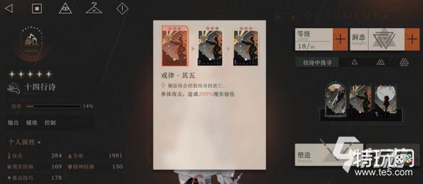 十四行诗:这是一个全面发展的控制系角色,拥有现实创伤的能力,同时可以强化我方实力,弱化敌方效果,在对战中是一个非常不错的辅助,而且他还拥有群体攻击的能力,虽然伤害不高,但是却能降低敌方的防御能力,为友方增加更多的输出空间。