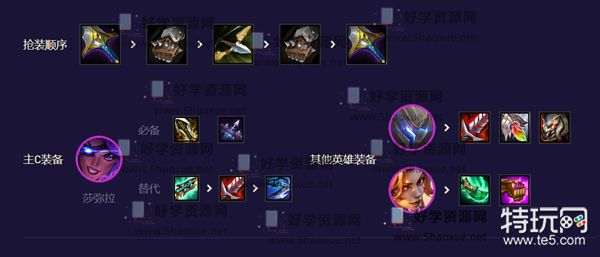 2、莎弥拉主C优先拿反曲之弓和暴风大剑,再选择暴击拳套和肉装。