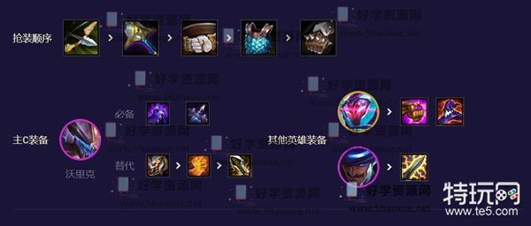 2、其次装备我们先给狼人做,优先抢反曲之弓和暴风大剑,后选暴击拳套和肉装。