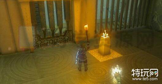 6、然后回到入口踩下机关使机关中的火炬桩伸出,再对刚刚举过的火炬桩用倒转即可使其全部点燃。