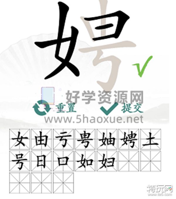 2、然后我们从娉字简单的部分进行找字,可以获得汉字:土、号、日、口、如、妇。
