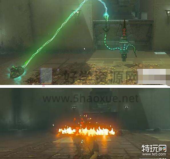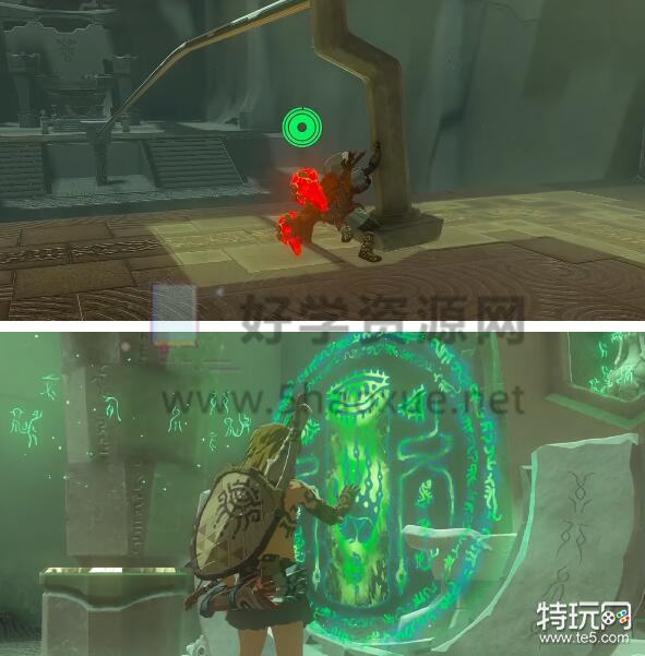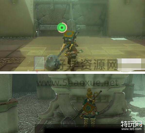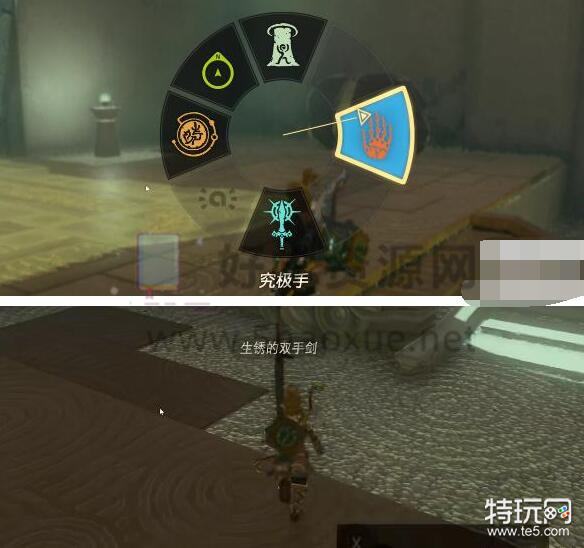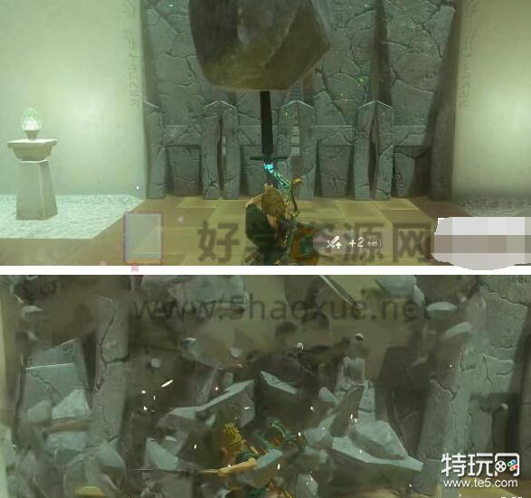 1、首先我们进入伊恩伊萨神庙一直往前走,到石门后用究极手把旁边石球和门口剑组合。