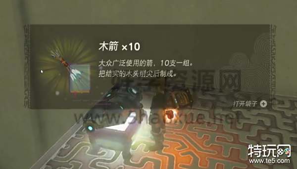 4、我们到达如图所示位置有个宝箱,打开获得木箭10个。