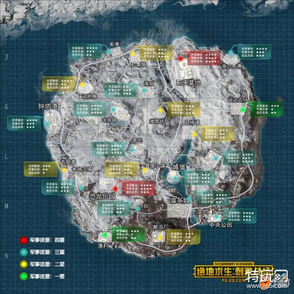 和平精英雪地地图维寒迪上线了,作为一个只有6*6公里面积的地图,维寒迪的资源可以说是非常紧凑,但维寒迪地图中还是有资源点的分布的,下面小编就为大家分享和平精英维寒迪地图军事资源点分布图,快来看看吧。