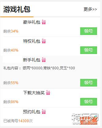 步骤3:或者直接查看“游戏礼包”,点击领号、淘号、预定即可;
