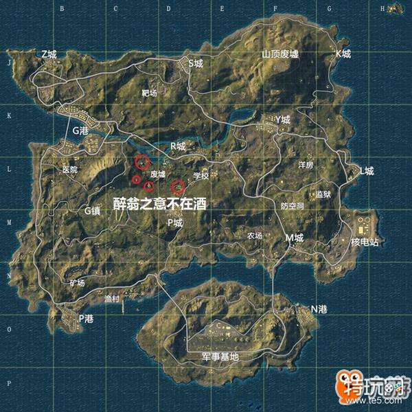 在降落废墟之后,对没有进水的外围建筑进行迅速的收集,在获得最基本的装备之后立刻向附近的野区转移;很多玩家估计会担心,因为附近地处宽阔,一旦遇袭,很可能因为没有掩体保护而被打死,但是实际上这种可能性并不高,我们再来看一下地图,废墟周围为G镇、P城、R城、学校,每一个都是大名鼎鼎的高级资源点,而这些高级资源点内的争斗也是非常的激烈的,至少在第一个圈缩完之前,很难有敌人能成功突围,并且就算有高手能够突围,他们为什么要来废墟呢?
