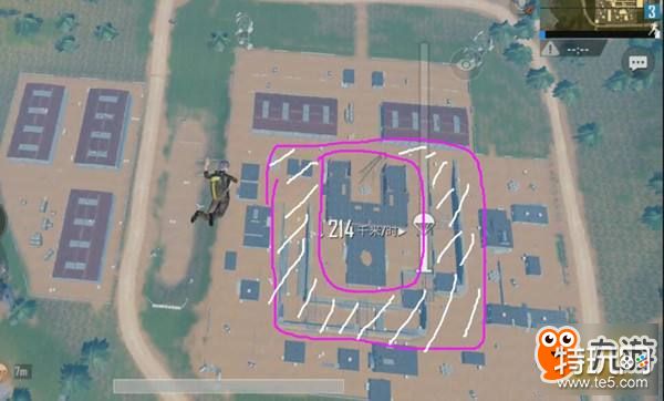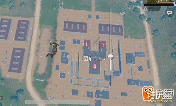 因为该建筑物资丰富度当属区域之首,所以一般落点玩家较多,而我们以上划分的三个点则是楼顶区域,同时三个区域均有直通楼下的通道,1、2位置旁边就是楼梯。3位置则可以直接直跳一楼。