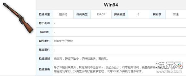 Win94的射速就是其优势之一。经过测试,98K一次的一次射击间隔足够Win94连续开出两枪。而在伤害上,WIN94比98K相差不到6点。所以在保证射击精准度的前提下,Win94的威胁丝毫不弱于98K。