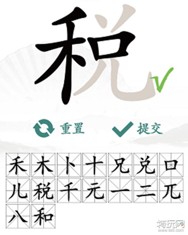 答案:禾、木、卜、十、兄、兑、口、儿、税、千、元、一、二、兀、八、和。