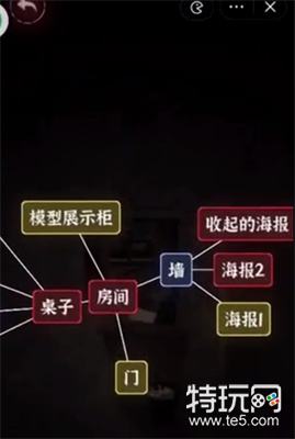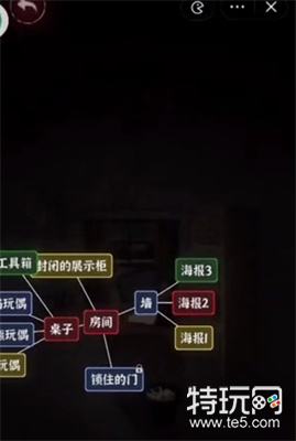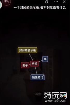 1、文字逃脱第八关首先点击房间可以得到【墙】、【桌子】、【锁住的门】、【封闭的展示柜】。