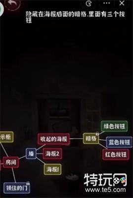 6、然后我们根据海报2的提示先点击右手两下,点击左手一下,再点击右手一下和左手一下就可以打开海报一,得到【暗格】。