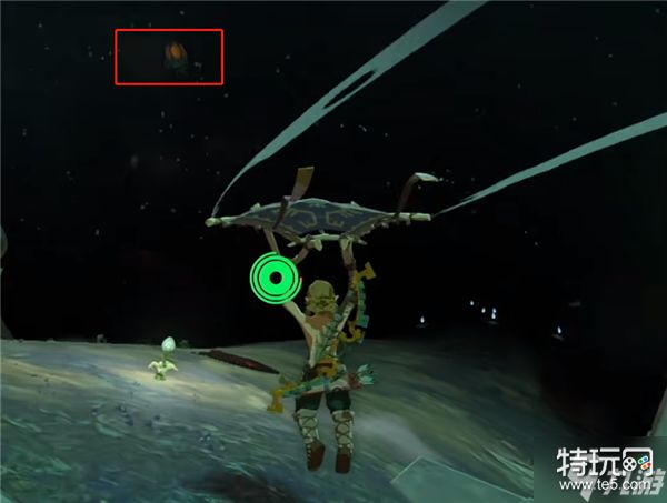 二、开伞下去后,让红框的方向丢光亮花照明,远处能看见一处树根,沿着路过去。