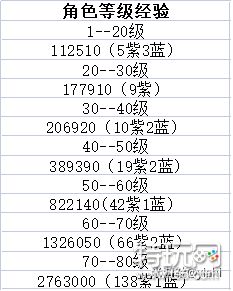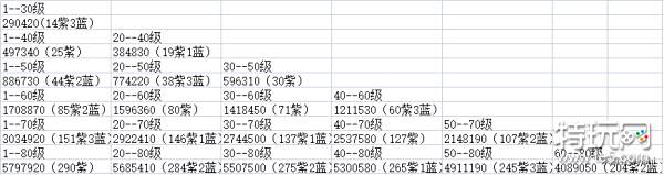 于是我就把各级加起来得出以下各角色升级经验所需。(经验书向下取整,紫色为紫色经验书漫游指南,蓝色为蓝色经验书冒险记录,绿色给的太少不做计算了。)