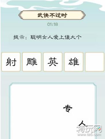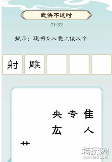 5,最后一个就是人和专组成一个传字,所以最后也是知道了这部剧就是叫做射雕英雄传。