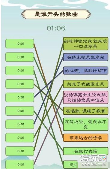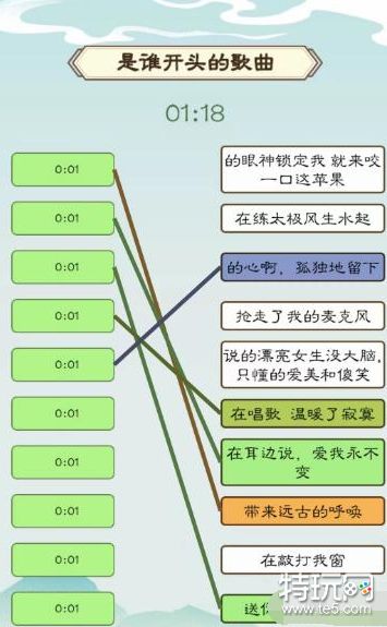 2,这边是先连线一次歌词,连线完成后可以看到这边的歌词是对应的歌词吗,所以玩家是需要仔细的听好这个歌词。
