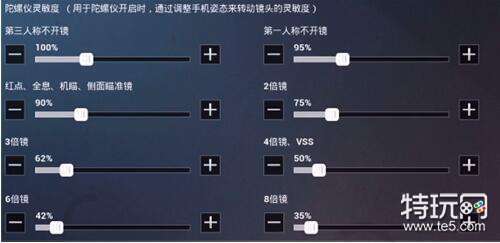 关于灵敏度的调整需要根据倍镜而定的,也就是说倍镜越高的话,数值就越低。如果倍镜越高的话很容易发生抖动,很难帮助你锁定目标,不利于击中目标。下面是具体的设置: