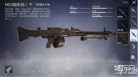 MG3轻机枪,使用7.62mm子弹, 弹容量为75发,除瞄具外没有其他配件,它有两种射击模式:分别为660普通射击和990急速射击,想要体验急速射击的特种兵可千万别放过这次机会!