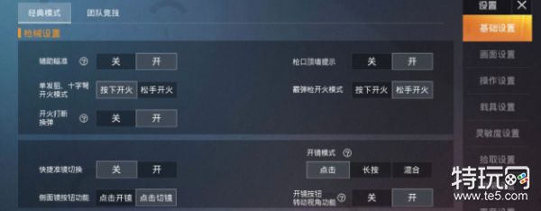 首先需要玩家们来到界面的设置选项里边,点击进入了之后就会看到左上角有个团队竞技的选项,接着就往下边看,右侧有个一件开镜开火的那个开关,把摁钮点击到开的这个设置了上边,这样系统就会自动保存了,是不是很简单啊。