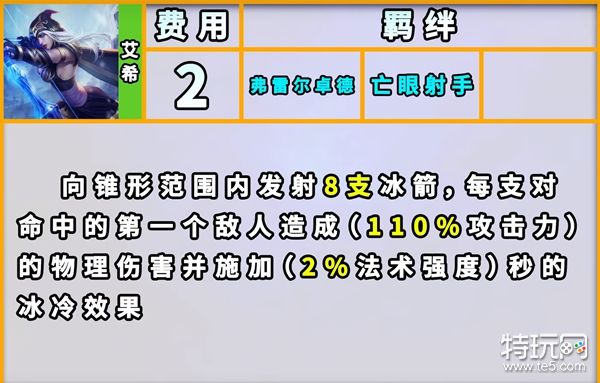技能:峡谷的W,发射8支箭,对命中的第一个敌人造成物理伤害,并附带冰冷效果。