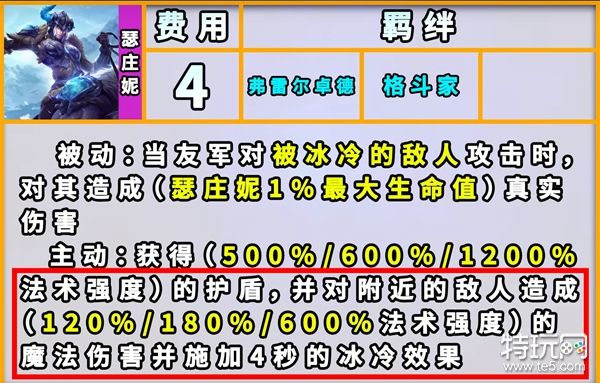 技能:被动:友军在攻击一个带有冰冻效果的敌人时,会造成额外的真实伤害。