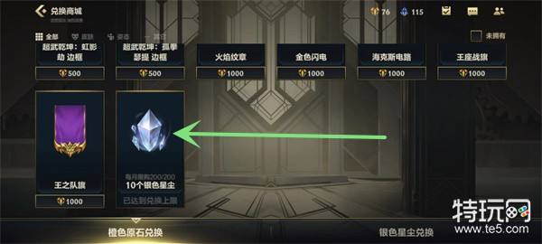 4、在进入到兑换商城内,需要玩家动动小手滑动到底部,下面就是兑换银色星尘的兑换选项。