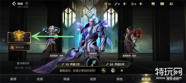 3、可以在战利品界面的右侧看见兑换商城,点击兑换商城按钮。