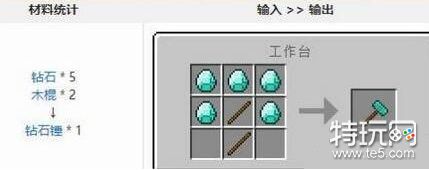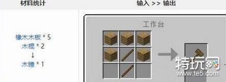 1、木锤,在工作台上放入5个木板,2个木棍就可以合成。