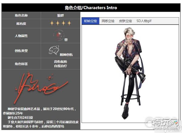 游戏中出现的角色如狼群即为男性角色,未锈铠即为非人类角色。