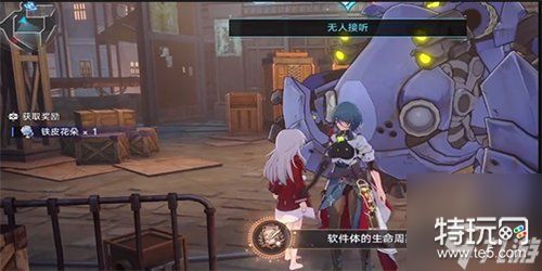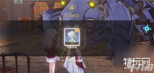 2、完成对话我们就可以获得一个铁皮花;