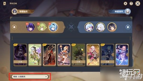进入活动后,我们选择雷电将军、柯莱以及优菈,进入活动后切记要把难度调成[认真胜负]。