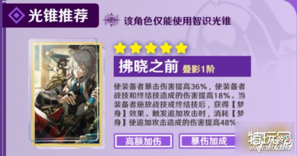 可以让景元在面对复数敌人时获得攻击力加成,敌人弱点被击破时获得高额追加攻击伤害加成,光锥效果与景元不是很契合,但如果环境适合,景元能够吃到大部分增益的话也算的上是景元光锥的优秀选择。