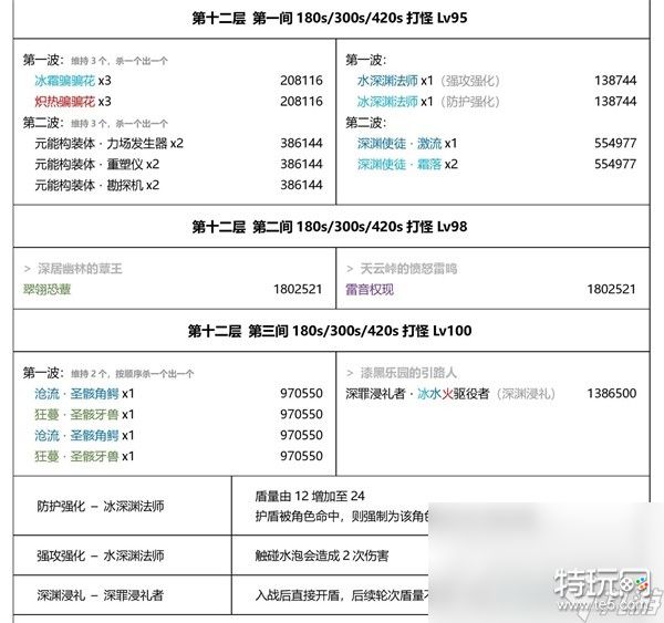 注意,12-3下半主要破盾并不难,难点是上半四只圣骸兽,请一定拿出你DPS最高的队伍打,建议