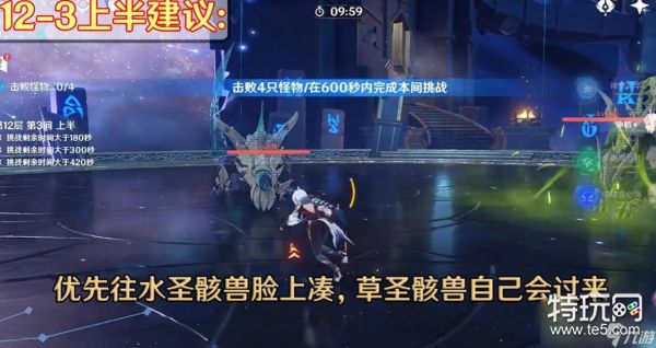 4、12-3上半伤害考验重量级,有两波水草圣骸兽组合,总血量来到了388万,如何拉怪确保每次技能都能命中两只怪,尤为重要。冻梨个人经验,一直追着水圣骸兽打,那个草圣骸兽灵活性太高会蹦来蹦去,靠近就后退、远离反倒会主动贴上来(你在和我玩欲擒故纵?)。
