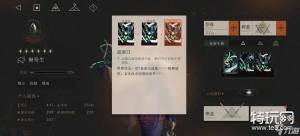 控制副C槲寄生五星首推无拘无束,带此心相特化的是压血能力,让槲寄生在攻击状态较好的敌人时,可以更快的削减敌人状态,且基础属性提供的仪式威力也提升了至终的压血能力。