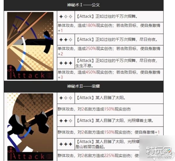 未锈铠是一位灵属性输出角色。他的神秘术能对敌方造成现实创伤,并且在击败对方时增加自身激情;至终的仪式能对敌方全体造成现实创伤,并在击败敌人时获得额外增益效果。