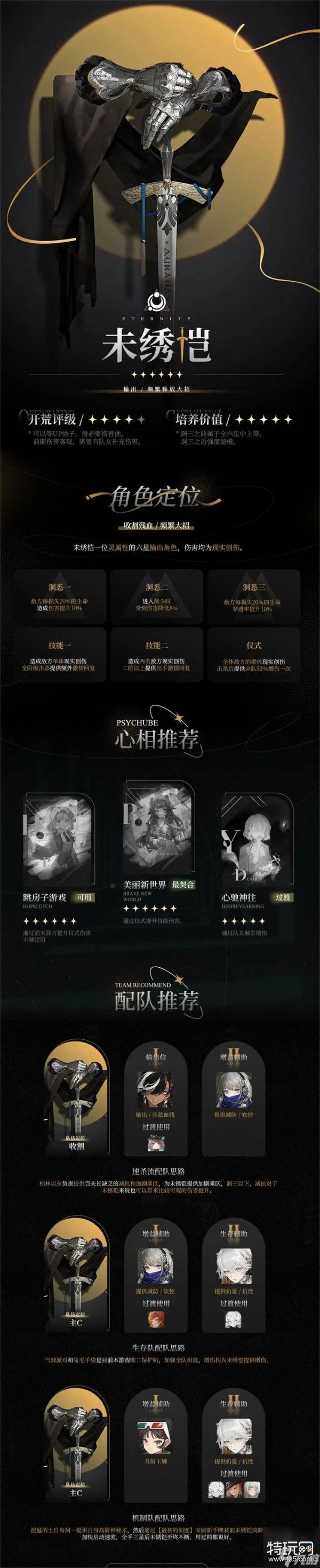 角色一图流内容包括:角色评级、配队思路及推荐、心相推荐、认真看完一图流,各位司辰们就可以对未锈铠的玩法有一个大致的思路啦。
