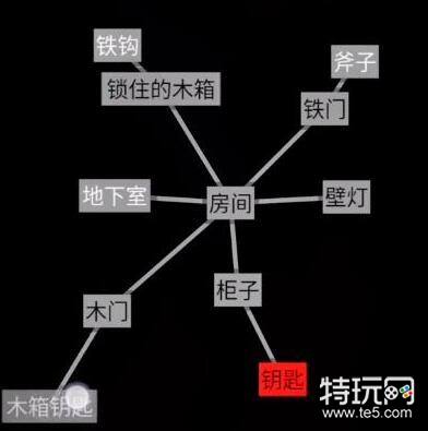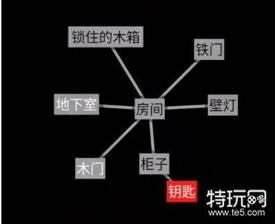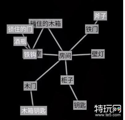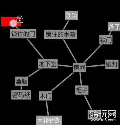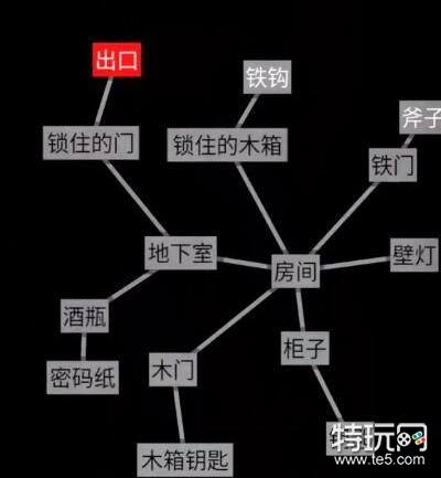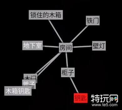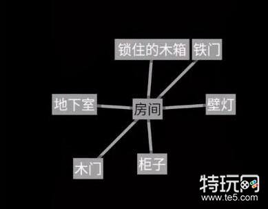 1、文字地牢第三关逃离密室点开房间可以得到【锁住的木箱】、【铁门】、【壁灯】、【柜子】、【木门】、【地下室】。