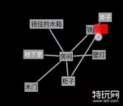 4、随后将钥匙放在铁门上就可以得到【斧子】,随后将斧子放在木门上就可以得到【木箱钥匙】。