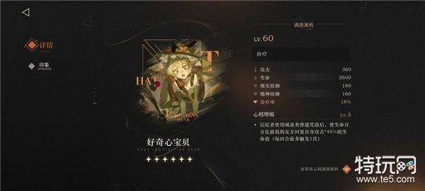 提供治疗率加成和单体回血,可以有效抬高单名残血角色血量,防止队伍中过脆角色暴毙,有效避免木桶效应。不过效果目前仅有两位六星奶可以较好吃到。