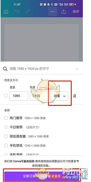 3、但是这个功能需要订阅canva可画高级版才能使用,也就是得充会员才行。如果你有自己设置分辨率的需求,最好是在刚开始创建画布的时候,选择自定义大小,里面就能设置分辨率,