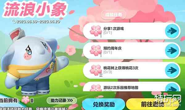 1、在6月9日至6月29日期间玩家登录游戏,参与“流浪小象”福利活动,收集桃花解锁全部10个故事即可领取典藏外观“流浪小象哆哆”