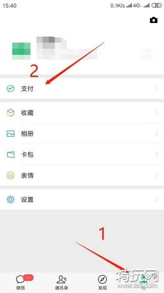 2.进入微信,点击右下角“我”,再点击“支付”。