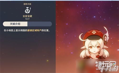可莉的固有天赋全是宝藏可以帮助玩家在小地图显示周围的蒙德地区特产,该固有天赋为一级自带,不需要升级去解锁,属于生活天赋。