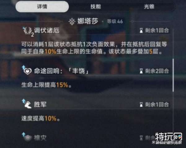 其中丰饶是核心,娜塔莎生命和我差不多就可以打模拟宇宙五了,全队生命掉的最多的时候也就一半,不用担心被秒。丰饶战技优先用,其他角色看情况用战技;命途回响尽量等卡夫卡行动结束再用,可以清除角色的心理暗示效果,清除以后角色就不会被控了。