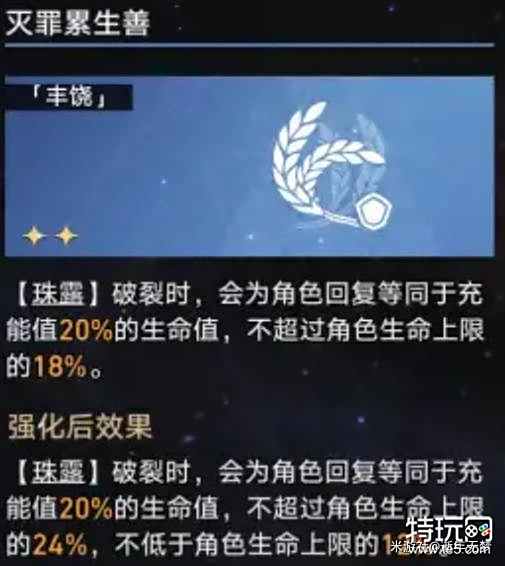 回响构音每回合一次的生命回复有效保证了珠露充能,灭罪累生善强化后提供的恢复可以大大提升输出、生存能力。
