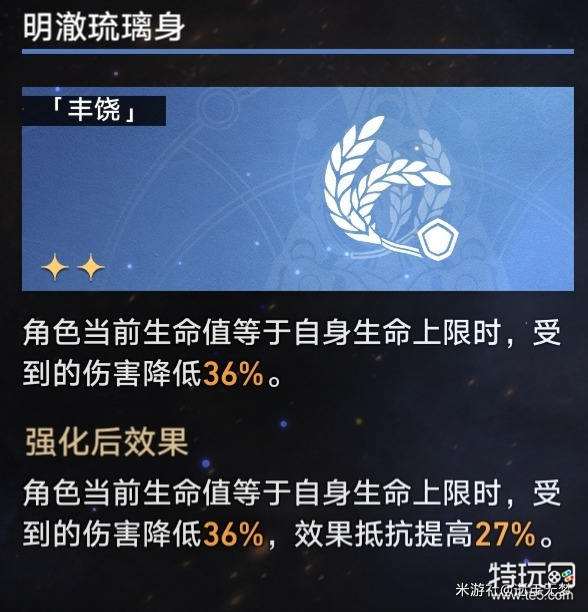 丰饶命途一般都是满血,很容易吃到明澈琉璃身的效果。选齐6个丰饶祝福触发法雨后,生命上限提升63%,大大提升了输出、生存能力