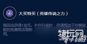 每回合获得1金币。在你升级时,获得相当于你等级数的免费商店刷新,这些刷新可保留至后续回合使用。